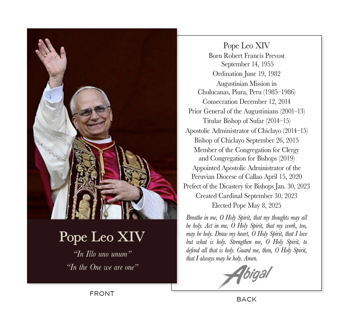 We have Pope Leo XIV commemorative cards. To View Click Here