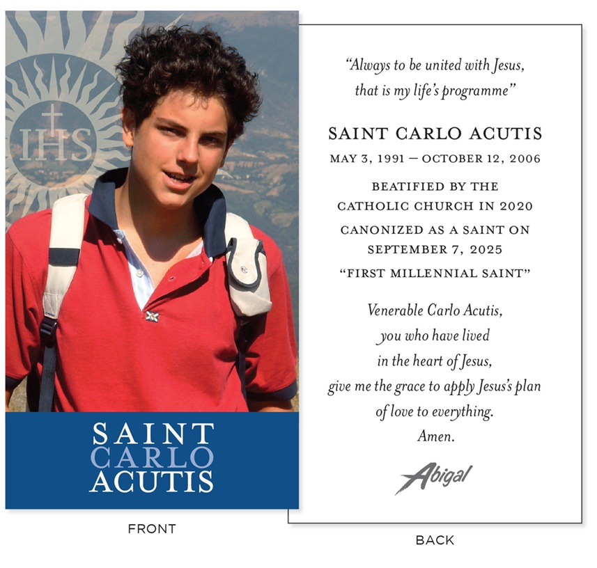 We have Saint Carlo Acutis commemorative cards. To View Click Here